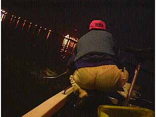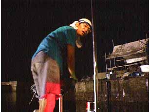 8/20kashimakou Night,SeaBassHunting 3! muddys号 in Kashimakou 今日はウォーターランドの三枝君を乗せ いざ、鹿島港! 「行くぜー三枝ーっ!」、「おーっ」 昭和産業付近で1時から2時30分頃まで粘るが バイトは有るものの、今一つ乗らない。 信越化学前の排水口でブラザーようやくゲット! でも次がバイトだけで2匹目が続きません、 乗りは悪いのですが、さすがツボを心得ているブラザー 暫くポイントを暖め、再度ゲット! 「よし来たー!」 次は鹿島電解付近でゲット おおーっちょっと大きいぞ60弱だな 「なにーまたかよー」と兄 なんだかんだで今日は5〜6本掛けている ふっふーん、おらが1バーン「得意、とくい」! 確かに俺達は、あ然としていた。....私&三枝 散々見せつけられてはいたが、密かにブラザーの釣法を得解く そしてゲット!いやっほー「竹中直人調」 いつもの鉄塔で最後粘るがブラザーがアイナメ1匹だけ。 そして夜が明ける、はいっ今日はここまで!納竿。 後は近所にお裾分け、 みんな食べてしまいましたとさ。 本日の簡単なデータ、 8/20時間0時40分〜5時30分まで、 潮、中潮、19日から干潮22時53分。20日満潮、4時34分。干潮、11時18分。 場所はいつもの排水口と灯りの下で 今日は信越科学前の排水口と 鹿島電解前付近の灯りの下での釣りをしていました。 ヒットパターン、肝は!、今日は、釣りはしやすいのですが、 感じんの釣り状況がベタ凪であまり良くなく、シーバスもバイトは有るものの、 ノリがいま一つである、でも排水口は若干アタリが続いてました。 シーバスのポイントも同じ 灯りの下で、明暗の際、ギリギリの表層を スローにリトリーブした。 一度ヒットしてしまうと次があまり続きません、 ヒットしたのも、そこに居着きのバスが主にであると思いました。 それと、もうひとつ、我先!これが一番 ルアーはジグヘッドでジャクソンのポップンミノーのパール色、 スライダー、バスグラブ、シャッドテールのパール色。 ではまた、