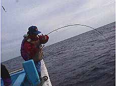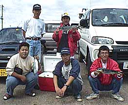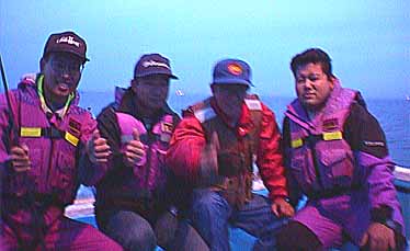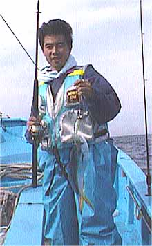 シイラゲーム9/28 行って来ました。みんなで初めてのシイラフィッシングへ 先週まで台風の影響で海のしけが続き28日日曜日は大丈夫かな? と思っていたのですが、土曜日にはおさまり28日は出船できました。 期待を胸に、当日前の日「初めてのシイラをどういうふうに釣るのだろう?」 「タックルは何が良いのだろう?」「釣れなかったら怖いな?」 と色々なことを考えてしまう。 「バスタックルで良いんだってサー」 「ええーいつも使ってるのでいいのー?うっそだーもたないんじゃないのー」 「ミデアムクラスの6.5フィート前後のバスロッドでラインは10.12ポンド以上、 ショックリーダーは6号25ポンドらしいよ」 大丈夫かなー? と言ってましたが当日になりまして、ヒャッホーの ソルトウォーターゲームフィッシングへGoー 不動丸へ乗り込みました。 メンバー右から荒川、倉持、西野、細谷君と私、大久保の5名 同船者は東京から今日初めて会った、二宮、内田君の2名 「今日はよろしくお願いします。又別の日にも一緒に釣りましょう。」 マッディーズは知っていたそうです。嬉しいです。 「シイラでなくてもルアーで釣れるもんだったらなんでもいいね」 「食えるっていうのが良いじゃない、ブラックと違ってさ」 「良かったねーっ今日は船出れて。釣れるといいなー」 「釣れなくても良いカー初めてのソルトウォーターだし」 なんて言ってました。 ポイントは流木などの障害物、それとドラッキング「トロール」しながら流していきます。 しばらく探すけどなかなか障害物が見つかりません 今日は駄目かなー?と思いきや、船長、流木発見「小さいね」 ホントに釣れるのかな、あんなに小さな流木に着いているのかな? 思いきや内田君が「フッ、フィッシュ!} おおーっホント着いてるよ、いたよシイラだ! よしゃー! すると、船上は一変した! あれよあれよの入れ食い状態! 「赤丸急上昇!」 メンバーがワッセワッセと釣り上げる! なんと1人り10〜20本、めじ鮪も混じって7人で100本以上の釣果でした。 サイズは50p前後と小さかったですけど バスタックルで楽しむには充分なゲームでした。 お昼近くまで楽しんで、ヘトヘトになってしまった 本部へ戻り早速今日の獲物を肴に乾杯したアルコール が入りそして疲れとともに皆死んだようにくたばってしまった。 ちょっと笑える。 見て!このずたずたのアスリート、箱からだした今日、 使ったのはこれだけだった。 本日簡単なデータ 潮、中潮。南西の風2位、AM5時出船7時30頃流木を見つけ当たる。 ヒットルアーはナチュラルな「ブルー系」のルアー、トップでもワームでもよし、 ちなみに仲間はエコギアーパワーワームミノーのシャッドテール5と1/2サイズ 50p前後でほとんどメスのようだ、メータークラスがくるとタックルが結構心配だ。 ルアーも解ってくると食いついてくるより、つついてしまい最後は見向きもしなくなる そしたらまたトロールしながら障害物を探していく。 釣船不動丸