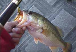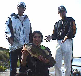 よ〜」という言葉を思い出し、果たして一週間たってもまだ通用するだろうかと思いな がらも「とにかく、風裏になっていたら志崎に行こう」と心に決めて大会に臨みました. 当日、風裏になるどころか無風状態。少し悩みながらも、「まあ、風がないんだから 同じだろう」と本命のポイントヘ。早速7号オモリのヘビキャロ(ナスキャロ)をセッ トして釣りを始めたところ、3投連続でヒット。しかしどれも600g前後のサイズ. その後もサイズが伸びないので、ワームを2.5インチのパドルテールから4インチの ミートヘッド(チャートリュース)に変えたところ、900gがヒット。チャート系の カラーのほうが大型の反応が良いように感じました. 雲が途切れて日が照り始めると、アタリが遠のいてしまいました。それでも、もう少 し粘ろうとキャストを続けていると、小さいが力強いバイト。すかさずフッキングした が食い込みが浅いためかすっぽ抜けてしまいました。結構大きい魚の感触だったので、 5分ほどその場所を休め、ミートヘッドも頭を2センチほどちぎって再度同じところヘ キャスト、やっぱりといった感じで食ってきたのが今回のキッカーとなった1.4kg でした.時間は7:30頃だったと思います。 その後更に魚がスローになり、ワームを割と細めのもの(アングラーズチョイス・ベ ビースキニーシェイカー:今は売られていない)にして、カラーもパンプキン系のもの に変えて10:00頃何とか1kgを追加するこ・とができました. ちなみに、アクションは2回ほど小さめのトゥイッチを加え長めの(5〜10秒)ポー ズをとるといったもので、バイトはすべてポーズの最中にありました. 今回のトーナメントは払にとっては出釆過ぎの結果となりました。今年から新たに始 まるマッディーズ・クラッシック出場を目指してこれからもがんばりたいと思います。 第3位は市塚雅紀選手! 兄ちゃん初参加から飛ばしまくっています、マリーナで1271グラムを筆頭に 終わってみればトータル5本5597グラムでボートでも優勝出来そうなウエイト 最後立て続けに3本、1100オーバーは驚異てきでした。