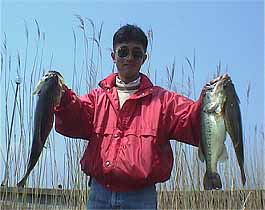 ![]() イメージmidです。 平成10年4月19日、晴れ、気温朝14度水温13度 muddys98年度が開幕いたしました。 今大会におきまして、96覇者、市塚裕之選手がJBトーナメントで河口湖への参戦でこれず 代わりと北浦の老舗のチーム、ミドルカップを代表で兄の雅紀選手が本年度からmuddysへ参戦くださりまして 大会は多いに盛り上がりをみせました。古メンバーの青木選手も久々の参戦でこれまた大会を 盛り上げ、初戦は凄まじい戦いとなり5人が2000グラム以上で1900を取ってきても 入賞できないと言う春先ならではの厳しい中、優勝を競った3名は2487グラムを筆頭に 100グラムの近差という北浦主「ぬし」達の面白い競演がみられました。 優勝はテッチャンこと青木哲也選手! 1本1633グラムを水原で釣る!これは裕之選手1496グラムを抜く大会記録 今年最初から水原で1600台を立て続けに出しているとても強い御人。 「テッチャンをクリック!」