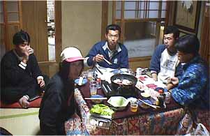 「裕之、出てこーいっ!」 遅れましたが、レポートです。簡単で申し訳ありませんがよろしく お願いします。 久しぶりの大会で、少し胸がワクワクしていた。結果は気にせず気楽に楽しんでこようと思う反面、MIDDLECUPを背負って出るからには、何とか頑張っていい成績を残したいななどと考えていたら、 目が冴えてしまって前の夜2時間位しか眠れなかった。 とりあえず自分のポイントを2、3ケ所やって、アタリが無ければ2週間位前から調子のいい、 マリーナに入ろうと思っていた。案の定MIDDLECUPでバレバレの自分のポイントは、潰れている。 マリーナに行くとラッキーな事に誰も居なかった。石ずみの先端に入り、ヘビキャロで扇状に探りを入れる。 何のアタリも舞いので、ストラクチヤーで軽くシェイキングをしながら、超スローで引いてみたら やっとアタリが出始めた。結果5匹フッキングしたのだが、捕れたのは2匹。 バラした中に1匹だけいいサイズがいたのが残念だった。 その後マリーナに来た百目鬼君と、久しぶりに話しをしながら釣りをした。 本部の大久保さんに連絡をとると、青木の哲ちゃんが1.6Kを釣ったとの事。 これは完全に勝てないなと思っていた所に、MIDDLECUP会長の関健一から電話が入る。 事情を話すと、自分のポイントに行こうという事になり、不本意ながら彼のポイントで釣らせてもらった。 中里川の近くにあり、春先にはかなりいいサイズのスポーニングパスが入る所である. 大物は出なかったが、終わってみれば自分でも驚く様な結果で、 嬉しい反面ホッとしたと言うのが本音である。 マッデイーズの皆様を始め、百日鬼君や西野君、それに弟から噂に聞いていた青木哲らゃんと 一緒に戦えて、とても楽しく勉強になりました。優勝インタビューを聞いていたら、おこがましいのですが 自分の若い頃や、忘れていた物を思い出して、らょっとだけ胸が熱くなりました。 又、朝早く起きられたら、参戦したいと思っています。 その後MIDDLECUPに2回出場しましたが、全然緊張感が 無いせいか、下の方でウロウロしている事をご報告します。 前夜祭は亡き小久保選手の写真を囲み明日への安全と期待を焼肉で祈願 「とっても活きまくっているテッチャンであった、ぽぉーーっ!」