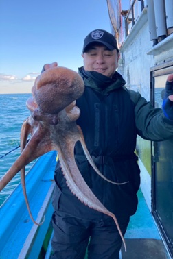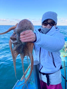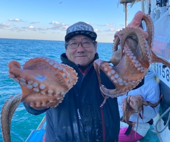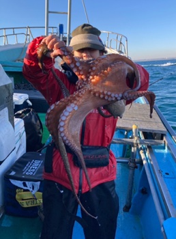 マダコ船は全員キャッチ!良いサイズもまじり、ポツポツ触りもあり、