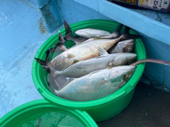 カンパチは潮の流れが速く、反応がすぐに抜けてしまい思うようにはいかずも、全員キャッチ!