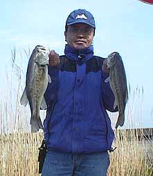 ![]() イメージmidです。 平成10年4月19日、晴れ、気温朝14度水温13度 muddys98年度が開幕いたしました。 今大会におきまして、96覇者、市塚裕之選手がJBトーナメントで河口湖への参戦でこれず 代わりと北浦の老舗のチーム、ミドルカップを代表で兄の雅紀選手が本年度からmuddysへ参戦くださりまして 大会は多いに盛り上がりをみせました。古メンバーの青木選手も久々の参戦でこれまた大会を 盛り上げ、初戦は凄まじい戦いとなり5人が2000グラム以上で1900を取ってきても 入賞できないと言う春先ならではの厳しい中、優勝を競った3名は2487グラムを筆頭に 100グラムの近差という北浦主「ぬし」達の面白い競演がみられました。 優勝はテッチャンこと青木哲也選手! 1本1633グラムを水原で釣る!これは裕之選手1496グラムを抜く大会記録 今年最初から水原で1600台を立て続けに出しているとても強い御人。 「テッチャンをクリック!」