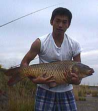 やっとヒットした鯉、写真を撮ったこのあとリリースしました。